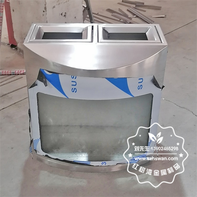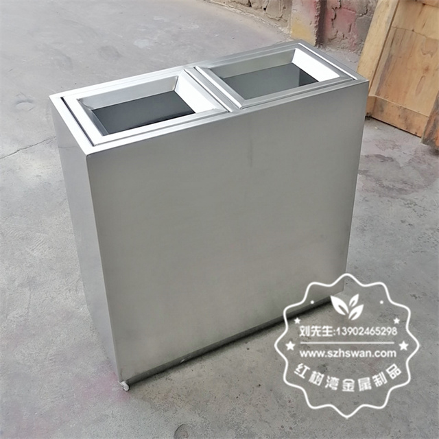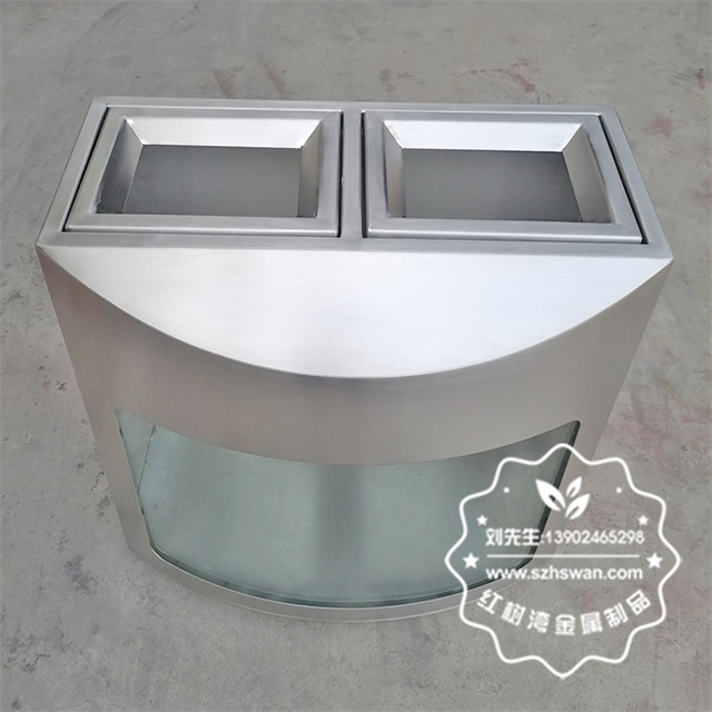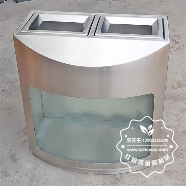 產品材質:室內地鐵站透明兩連體不銹鋼分類垃圾桶采用201#,202#,304#優質不銹鋼材料模壓成型,堅固耐用;內外表面光潔,減少垃圾殘留,易于清潔;配置鍍鋅板內桶,便于垃圾清倒;