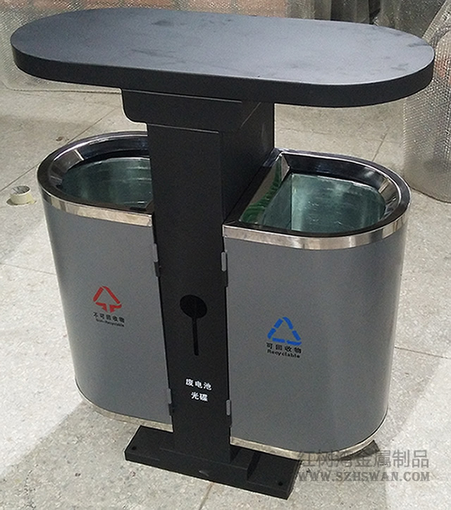 這款F120環(huán)保分類鋼制垃圾箱在生產(chǎn)中,由專業(yè)工人焊接成型,產(chǎn)品表面圓滑光澤。板材選料使用5厘厚優(yōu)質(zhì)鋼材,一次拉伸無縫焊接成型,結(jié)實耐用,所用材質(zhì)尺寸與客戶要求分毫不差,桶身整體上工廠師傅們作了高溫烤漆效果,高檔質(zhì)感,外型為灰色,簡潔大方。金屬光澤,新穎大氣,適合小區(qū)廣場多種場所、桶身邊角采用了弧線行的防撞設(shè)計避免高人流時不經(jīng)意的磕碰對人身造成傷害,投入口使用大敞口設(shè)計,方便垃圾投入與收納。噴繪油墨絲印分類環(huán)保標識,防曬不易落,環(huán)衛(wèi)工人清潔時可以直接從桶頂處拿取內(nèi)桶,利于清潔。