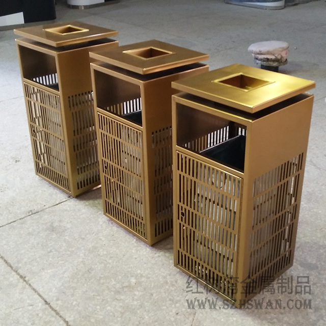 廣州天河區物業采購鏤空式土豪金方形不銹鋼垃圾桶項目
