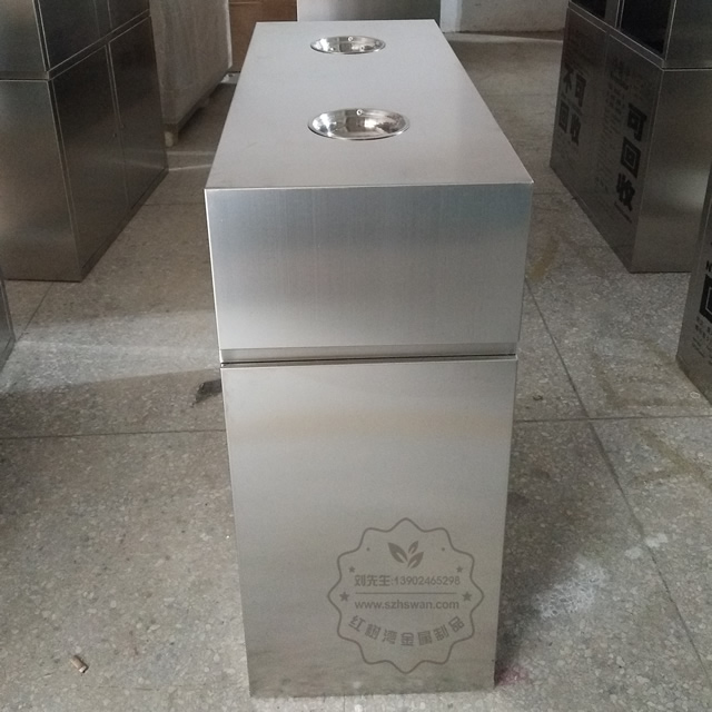 近日浙江金華銀都花園物業小區接到信息衛生管理局要過來檢查衛生情況,急忙的叫物業采購部門采購一批戶外倆分類不銹鋼垃圾桶,采購人員在百度上找了很多家不銹鋼垃圾桶的生產廠家都不滿意他們廠家生產的產品,最后找到我們紅樹灣金屬制品廠家看到我們網站上的垃圾桶很大氣,我們業務人員給他們推薦了下面這款高檔的雙分類戶外不銹鋼垃圾箱。  這款雙分類戶外不銹鋼垃圾桶采用304不銹鋼板制作,產品型號:C313,產品尺寸:1000*400*900mm,內筒:鍍鋅板,煙灰缸:雙煙灰缸,形狀:立體長方形,開門設計:垃圾箱背后三角鑰匙開門,絲印了可回收、不可回收還有一些創意的韓文,起到了良好的裝飾效果,這款垃圾桶是我們紅樹灣金屬制品廠家賣的比較好的產品。小區設施:小區內設150平方全民健身小廣場,有娛樂設施。社區衛生服務等。