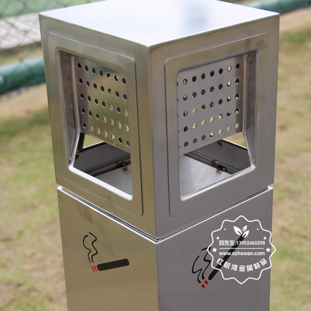 不銹鋼歐式煙灰桶采用優質201不銹鋼無縫焊接成型,投口模具沖壓成型,邊角精細打磨拋光圓滑不割手,高檔大氣。