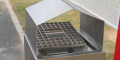 產品材質:室外方形不銹鋼煙蒂柱采用201#,202#,304#優質不銹鋼材料模壓成型,堅固耐用;內外表面光潔,減少垃圾殘留,易于清潔;配置鍍鋅板內桶,便于垃圾清倒;