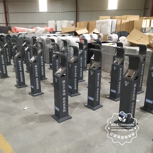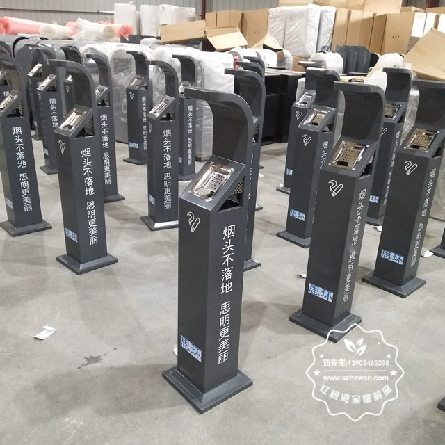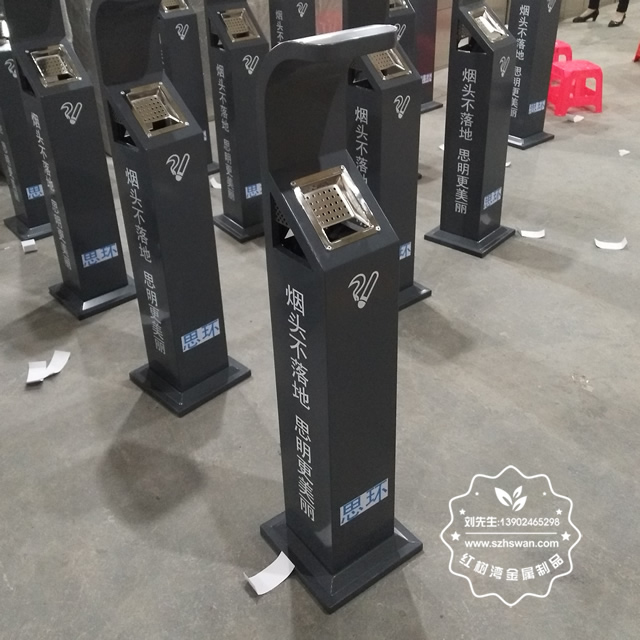 產品材質:戶外烤漆立式方形鋼板煙灰柱采用優質不銹鋼材料經專業除銹處理,表面采用專用戶外高溫烤漆,保證色彩鮮艷持久,有效防止生銹。外飾大理石表面呈金黃色,光滑亮麗彰顯高貴本色;